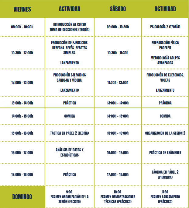 CURSO DE MONITOR DE PÁDEL